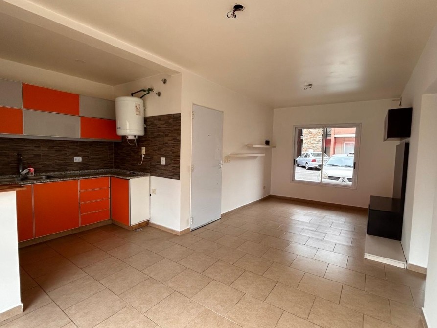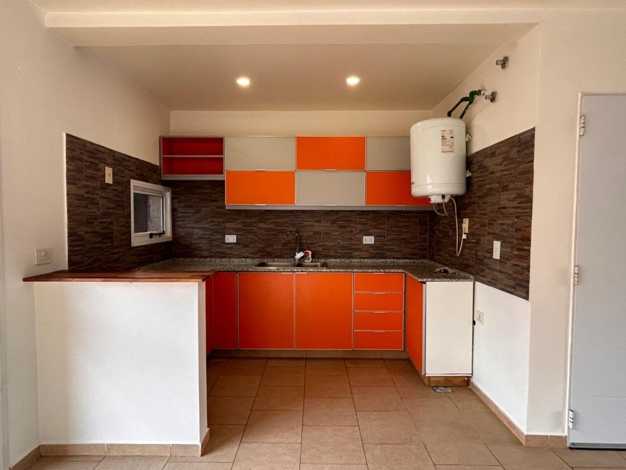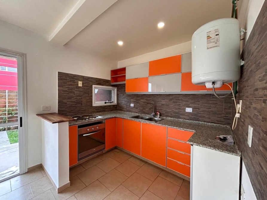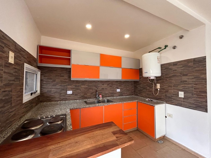 • Cocina integrada con artefacto de cocina eléctrico con horno, alacenas, mueble bajo mesada y termotanque.